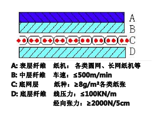 單層 BOM 毛毯的底網(wǎng)層是單層結(jié)構(gòu),具有濾水性好、縮率小、便于洗滌、毯痕輕、使用壽命長(zhǎng)等特點(diǎn),廣泛應(yīng)用于圓網(wǎng)、長(zhǎng)網(wǎng)紙機(jī)等生產(chǎn)各類紙張